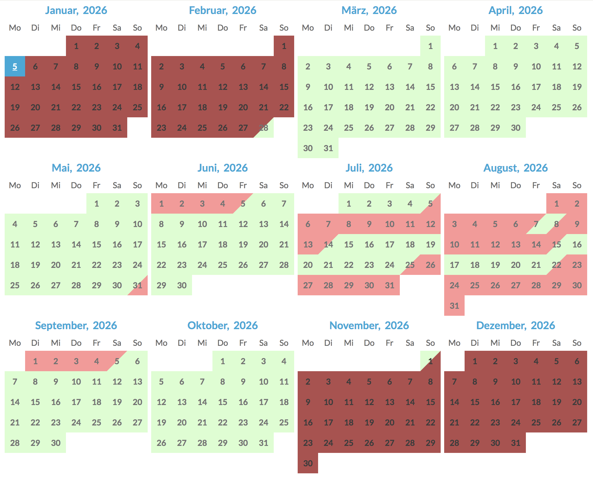 5 Nächte Mindestaufenthalt in der Hauptsaison und Nebensaison.